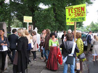På Aschehougs kombinerte se-og-bli-sett-treff i villaen på Drammensveien, kom all den høystemte patos fullstendig i skyggen av våre ivrige aksjonister som hadde okkupert fortauet utenfor hovedinngangen. Og alle smilte til oss – både Mona Levin og Jostein Gaarder uttrykte – med et lettelsens sukk – sin støtte til en sak som vår, som det er så lett å være enig i.