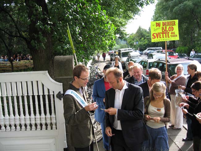 NRKs stjernereporter Bo Brekke ankommer sammen med Erling Dokk Holm. Men hvem er han som skygger for Dokk Holm? Er det kjendislegen Jon Sudbø?